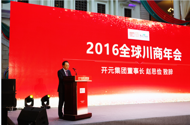 開元集團作為此次盛會的獨家冠名單位,與出席會議的領導、學者和知名川商一起,共同見證了2016川商榮譽的巔峰時刻,集團趙董事長代表開元發表重要講話。